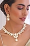 Featuring a gold finish handmade necklace studded with kundan polki, set in brass. It is paired with a matching pair of earrings. Perfect wear for festive occasions or wedding ceremonies.