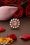 Featuring a gold finish adjustable ring studded with pink rose quartz and kundan polki, set in brass. Add a touch of sparkle to your ensemble, perfect for festive occasions or wedding ceremony.