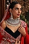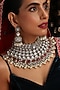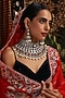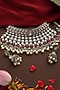 Featuring a gold finish choker necklace studded with kundan polki and ruby stones, set in brass. It is paired with a matching pair of earrings. Add a touch of sparkle to your ensemble, perfect for wedding or engagement ceremony.