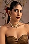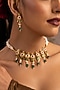 Featuring a gold finish choker necklace studded with multi-colored jadau kundan polki, set in brass. It is paired with a matching pair of earrings. Ideal for festive occasions, weddings, or elevating your elegant evening look.