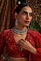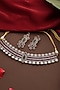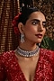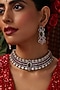 Featuring a gold finish handcrafted choker necklace studded with multi-colored kundan polki and zircons, set in brass. It is paired with a matching pair of earrings. Accentuate it with a richly embroidered saree or a regal lehenga set for a stylish ensemble, ideal for wedding ceremonies, engagement functions or grand festive celebrations.
