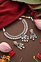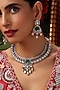 Featuring a gold finish handcrafted choker necklace studded with multi-colored kundan polki and zirconia, set in brass. It is paired with a matching pair of earrings. Accentuate it with a richly embroidered saree or a regal lehenga set for a stylish ensemble, ideal for wedding ceremonies, engagement functions or grand festive celebrations.