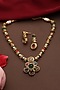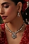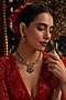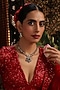 Featuring a gold finish handcrafted pendant necklace studded with navratna kundan polki, set in brass. It is paired with a matching pair of earrings. Accentuate it with a richly embroidered saree or a regal lehenga set for a stylish ensemble, ideal for wedding ceremonies, engagement functions or grand festive celebrations.