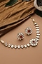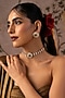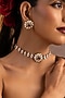 Featuring a gold finish choker necklace studded with red kundan polki, set in brass. It is paired with a matching pair of earrings. Ideal for festive occasions, weddings, or elevating your elegant evening look.