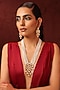 Gold Finish Red Kundan Polki & Pearl Long Necklace Set