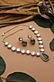 Rose Gold Finish Emerald Green Kundan Polki Pendant Necklace Set