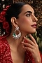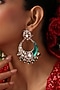 Featuring a pair of rose gold finish chandbali earrings studded with green kundan polki, set in brass. Add a touch of sparkle to your ensemble, perfect for festive occasions or wedding ceremony.