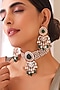 Featuring a rose gold finish choker necklace studded with kundan polki, set in brass. It is paired with a matching pair of earrings. Adorn this lightweight necklace set for a touch of elegance to your festive wear or for cocktail parties or special occasions.