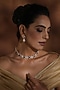 Featuring a rose gold finish handmade necklace studded with kundan polki and green zirconia, set in brass. It is paired with a matching pair of earrings. Ideal for evening events or festive gatherings, these earrings ensure you radiate refined elegance and sophistication.