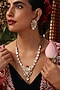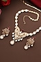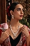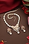 Featuring a rose gold finish pendant necklace studded with kundan polki and multi-colored stones, set in brass. It is paired with a matching pair of earrings. Add a touch of sparkle to your ensemble, perfect for wedding or engagement ceremony.