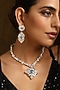 Featuring a rose gold finish pendant necklace studded with kundan polki, set in brass. It is paired with a matching pair of earrings. Perfect wear for wedding celebrations or grand events.