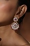 Featuring a pair of rose gold finish handmade chandbali earrings studded with red kundan polki, set in brass. Ideal for evening events, or festive gatherings, these earrings ensure you radiate refined elegance and sophistication.