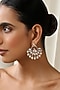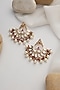 Featuring a pair of rose gold finish chandbali earrings studded with red kundan polki, set in brass. Perfect choice for weddings, parties and for other Indian festivities.