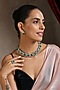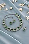 Featuring a silver finish handcrafted single line necklace studded with emerald stones, set in mixed metal. It is paired with a matching pair of earrings and a ring.