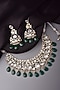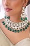 Featuring a white finish handmade choker necklace studded with kundan polki and green stones, set in brass. It is paired with a matching pair of earrings. Perfect wear for festive occasions or wedding ceremonies.