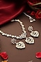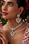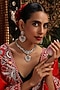 Featuring a white finish handcrafted necklace studded with silver kundan polki, set in brass. It is paired with a matching pair of earrings. Accentuate it with a richly embroidered saree or a regal lehenga set for a stylish ensemble, ideal for wedding ceremonies, engagement functions or grand festive celebrations.