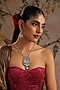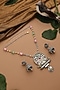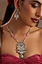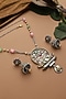 Featuring a white finish pendant necklace studded with multi-colored stones, set in brass. It is paired with a matching pair of earrings. Ideal for festive occasions, weddings, or elevating your elegant evening look.
