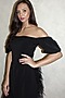 Featuring a black off shoulder jumpsuit in crepe base with feathers detailing.