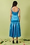 Featuring a blue sleeveless dress in duchess satin base with a scoop neck and gathered hem details. Accentuate the look with statement earrings and strappy heels for a touch of timeless elegance.