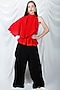 Featuring a candy red peplum top in heavy crepe base with a cape and a band collar. This contains only one piece.