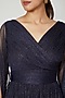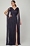 Featuring a cobalt blue gown in embellished tulle base with a slit. It has long flared sleeves.
