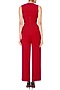 Featuring a crimson boat neck jumpsuit in imported crepe base with cutout on the waist highlighted with chantilly lace work at the edges.