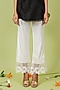 Featuring an ivory straight pants in heavy crepe and lace base with pockets. Style it with a crisp cotton shirt for official gatherings, and upgrade the look with minimalist jewellery and pointed stilettos.
