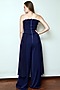 Featuring a midnight blue jumpsuit in crepe base with side drapes.