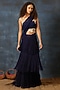 Featuring a midnight blue fringed pre-stitched saree in georgette base. It is paired with a hand embellished blouse. Accentuate it with drop earrings, heels and a sling bag for festive soirees, weddings or sangeet ceremonies.