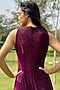 Featuring a purple jumpsuit in lurex base with extended drape.