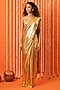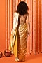 Featuring a sun gold pre-stitched saree in foil base. It is paired with a blouse. Accentuate it with drop earrings, heels and a sling bag for festive soirees, weddings or haldi ceremonies.