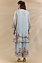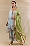 Featuring a blue short kurta in organza base with thread work. It is paired with palazzo pants and a dupatta. Accentuate with statement jewellery and heels for a festive occasion, sangeet or family gatherings.