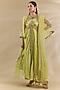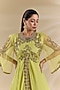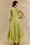 Featuring a green long kurta in organza and cotton silk base with embroidery. It is paired with pants and a dupatta. Accentuate it with statement earrings and heels for a festive, sangeet or mehendi ceremony