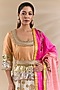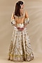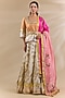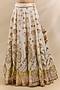 Featuring an ivory lehenga in dola silk base with gota work. It is paired with an embroidered blouse, a dupatta and a belt. Accentuate it with statement jewellery and heels for a wedding, sangeet or engagement ceremony.