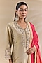 Featuring an ivory kurta in tissue base with embroidery. It is paired with salwar pants and a banarasi georgette dupatta. Accentuate it with statement jewellery and block heels for festive occasions, weddings or engagement ceremony.