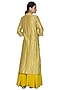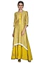 Featuring a mustard yellow asymmetric kurta in chanderi base with gota line embellishments. It is paired with matching sharara pants in cotton base.