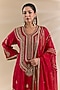 Featuring a red kurta in dola organza base with embroidery. It is paired with palazzo pants and a dupatta. Accentuate with statement jewellery and heels for a festive occasion, sangeet or family gatherings.