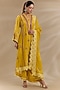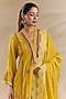 Featuring a yellow asymmetrical kurta in crepe base with embroidery. It is paired with palazzo pants and an organza dupatta. Accentuate with statement jewellery and heels for a festive occasion, sangeet or haldi ceremony.