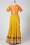 Featuring a yellow blouse in brocade base with embroidery. It is paired with a matching lehenga and a dupatta..