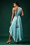 Aqua Silk Embroidered One-Shoulder Dress With Belt