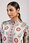 Featuring an ivory and aqua straight kurta in satin base. It is paired with pants. Accentuate with statement earrings and heels for festive occasions or family gatherings.