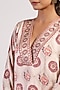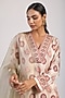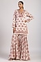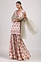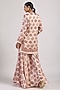 Featuring an ivory short kurta in satin base with hand embroidery. It is paired with flared sharara pants and a brown dupatta having tassels. Accentuate with statement earrings and heels for festive occasions or sangeet ceremonies.