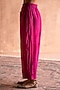 Featuring pink handwoven yarn dyed pants in silk and cotton base with inverted pleats.
