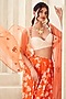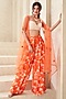 Featuring an orange cape in organza and tulle base with embellishment. It is paired with a quilted bustier and printed pants having embellishment. Accentuate it with statement jewellery and heels for festive ceremonies.