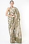 Featuring an olive green saree in pure tussar base with patola jaal work. It is paired with a matching unstitched blouse.