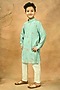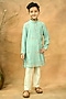 Green Pure Chanderi Embroidered Kurta Set For Boys