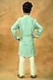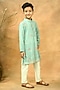 Featuring a green kurta for boys in pure chanderi base with embroidery. It is paired with cotton silk pants. Style it with mojris and a watch for a festive occasion.