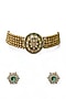 Gold Finish Green Kundan Polki & Semi-Precious Stone Choker Necklace Set