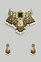 Gold Finish Kundan Polki & Green Semi-Precious Stone Necklace Set