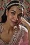 Featuring a gold finish mathapatti studded with imitation kundan polki, and red stones, set in brass. This mathapatti is ideal to wear for a pooja ceremony or festive occasion.